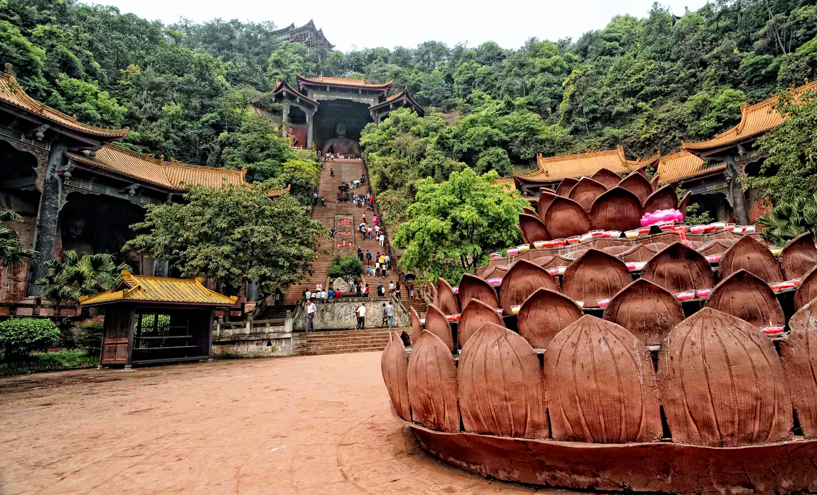 Well, it’s day nine of our walk around the beautiful gardens that surround Leshan Temple in Sichuan Province China. We are now coming to the temple itself, as you will see from the images below, it is protected by some fearsome carvings which stand guard outside the temple entrance. The temple is high up the side of the hill and it is a very tiresome climb up all those steps.