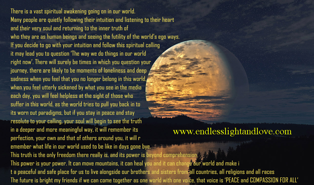 So for me, I like to keep an open mind, I believe there is not ‘Right Way’ to life, no ‘Right and only Religion’ and no set way of doing anything. I like to believe we are all from the one same source, we are ‘All’ part of ‘Life’s Rich Tapestry’, we are ‘One Humanity’ living on ‘One World’ and it is our collective responsibility to love all mankind and protect our world for our future generations in the hope that one day everyone will understand that we are……..